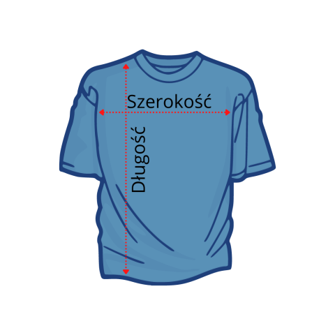 Koszulka mierzona na płasko, bez rozciągania. Szerokość ciała jest mierzona w poprzek koszulki, 1cm poniżej rękawów. Długość mierzona jest od najwyższego punktu na ramionach do końca koszulki.
